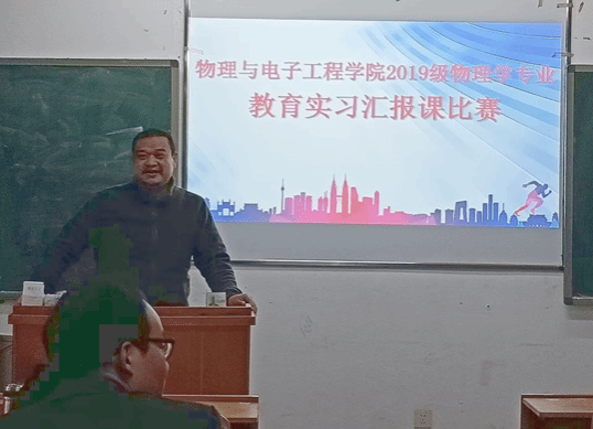 为展示PA集团官网毕业生教育实习成果,提升其综合素质,夯实其教育教学基本功,3月3日下午,物理与电子工程学院于理科三楼南404举行了“2019级教育实习汇报课比赛”。本次比赛由王莅云扬主持,由陈功老师组织,凌晓辉、陆世专、张军民、王尚云和邓小辉五位老师担任评委。