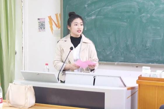 首先由主持人王莅云扬向在场同学介绍了比赛流程与比赛规则。本次比赛共分为片段教学、评委点评、颁奖合影三个环节,选手们需采用PPT与板书相结合的方式进行5分钟的授课,评委们从教学目标的制订、教学过程的设计和课件制作方面进行评分。