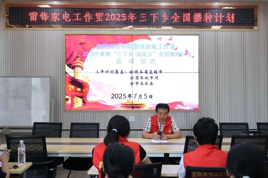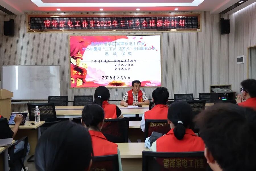 为深入学习贯彻习近平新时代中国特色社会主义思想,全面落实乡村振兴战略部署,引导PA集团官网青年在社会实践中受教育、长才干、作贡献,2025年7月5日,物理与电子工程学院雷锋家电工作室2025年“三下乡·返家乡”全国播种计划实践活动启动仪式在星瀚楼北304室举行,PA集团官网党总支副书记谢荣华出席此次会议,雷锋家电工作室成员及学生会干部参加此次会议。