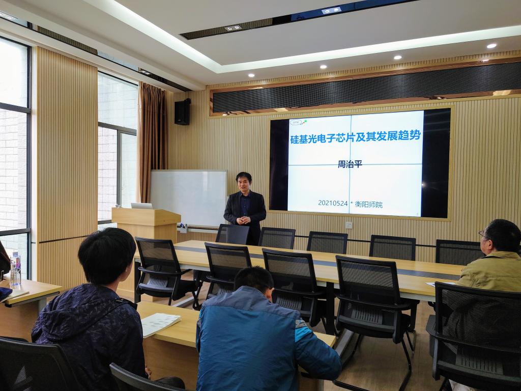 5月24日上午,北京大学教授、博士生导师周治平教授应邀来我校,在物理楼北309会议室为物理与电子工程学院师生作了题为《硅基光电子芯片及其发展趋势》的报告。副校长魏晓林教授出席报告会,物理与电子工程学院院长谭延亮教授主持报告会。