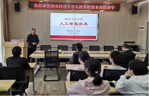 11月25日上午,湖南科技大学吴新开教授应邀来我校作题为“精准定位中的人工智能技术”的学术讲座。物理与电子工程学院班子成员、电子设计竞赛指导教师以及学生代表聆听了学术讲座。讲座由原副校长张登玉教授主持。