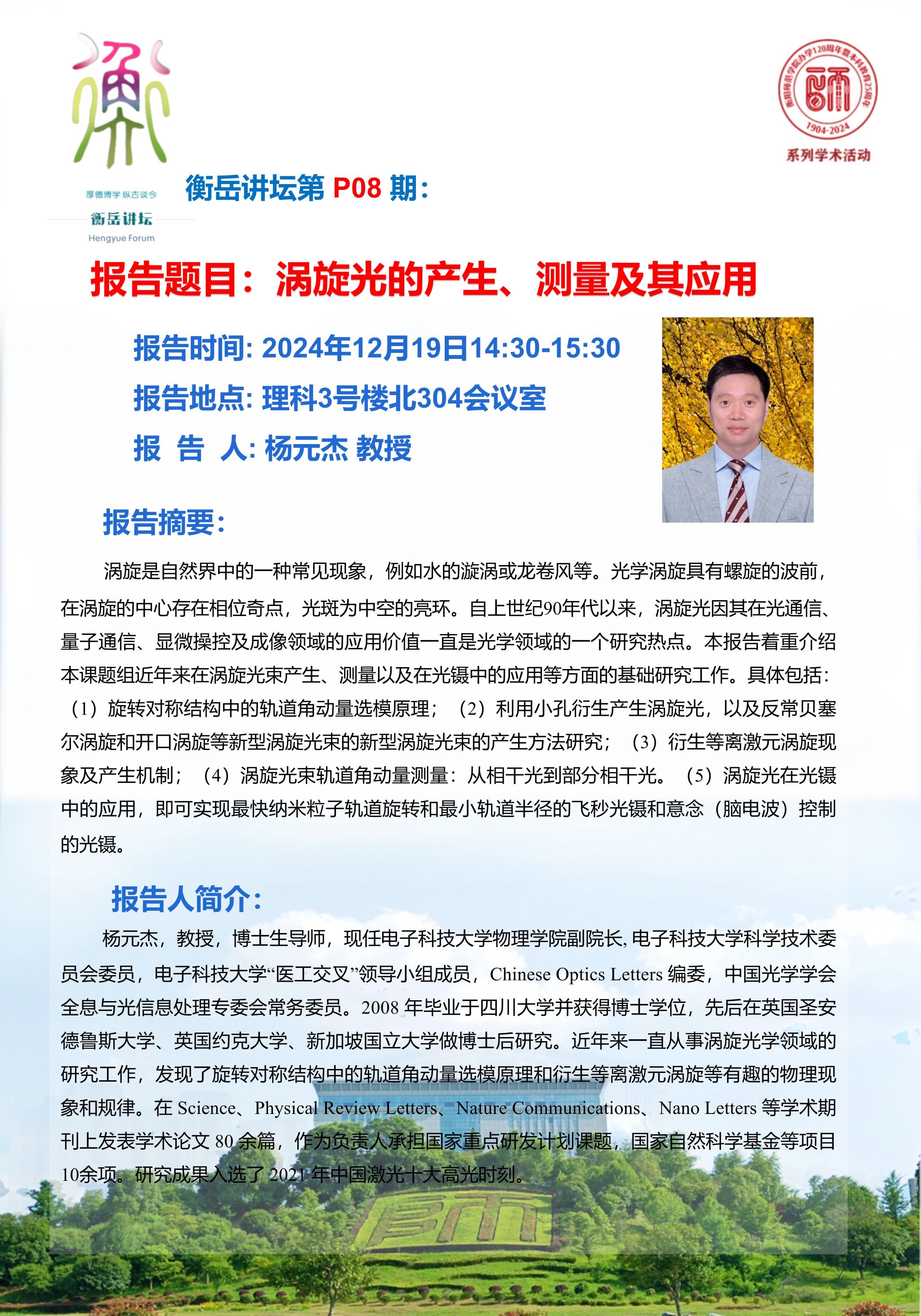 衡岳讲坛第P08期:杨元杰教授讲座预告