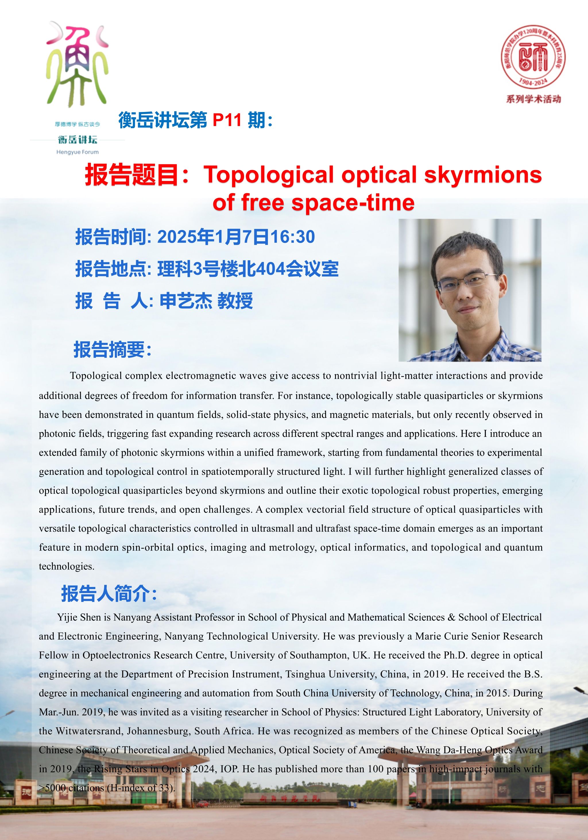 新加坡南洋理工大学申艺杰教授报告预告