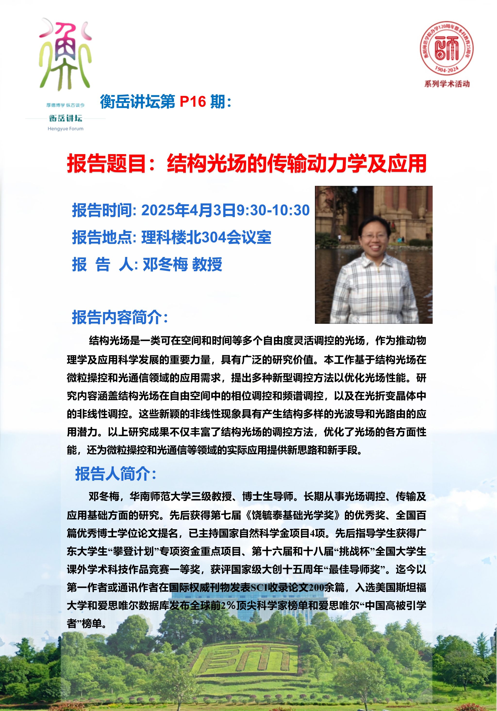 衡岳讲坛第P16期:结构光场的传输动力学及应用