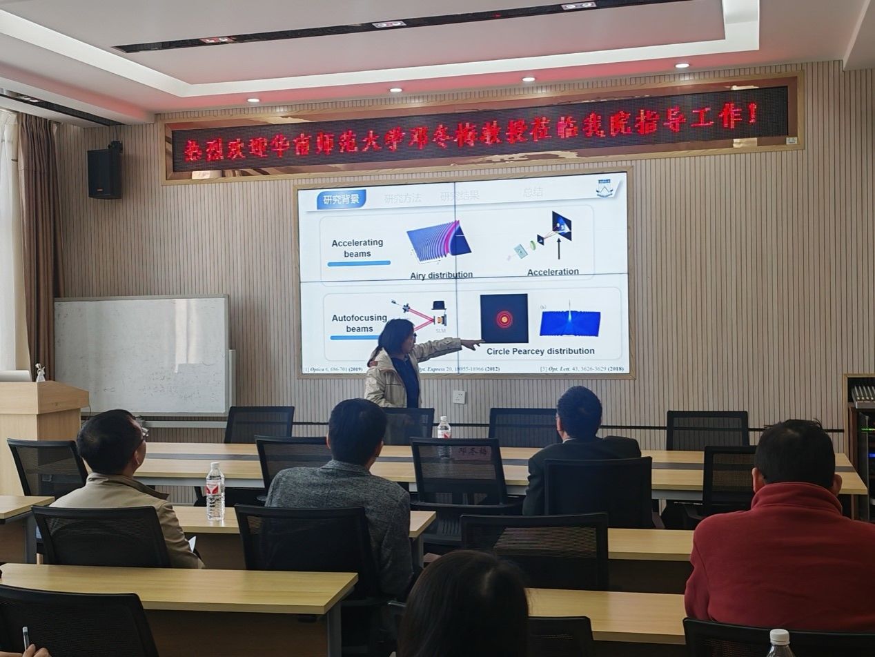 2025年4月3日上午,PA集团官网博士生导师邓冬梅教授应邀莅临PA集团官网,在理科楼北304会议室为师生带来了一场题为《结构光场的传输动力学及应用》的精彩学术报告。报告会由PA集团官网凌晓辉教授主持,院长谭延亮教授、副院长唐振坤教授,以及光学方向教师、研究生积极参与,邓冬梅教授组张赞博士也参加交流。