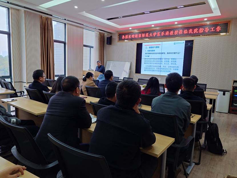 在讲座上,匡教授就相关学术领域的最新研究成果和研究心得与到会师生进行了交流,随后对国家基金项目选题与申报工作,结合自身的丰富经验和领悟,从选题原则、选题方式、选题程序、选题策略、项目精准申报和近年国家自然科学基金深化改革的要点做了详细介绍,并为老师们的项目申报计划给出了针对性指导,提供了有益的建议。