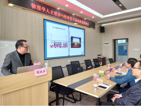 2022年11月17日上午,PA集团官网祁东附属中学(以下简称“祁东附中”)副校长周迪云、教务主任周云贵应邀来PA集团官网参加物理学人才培养与教育实习基地建设座谈会。会议在学院会议室进行,PA集团官网原副校长张登玉教授、院长谭延亮、党总支书记陈溪辉、副院长唐振坤、PA集团官网负责人凌晓辉等院领导、专家和教授参加了座谈会。