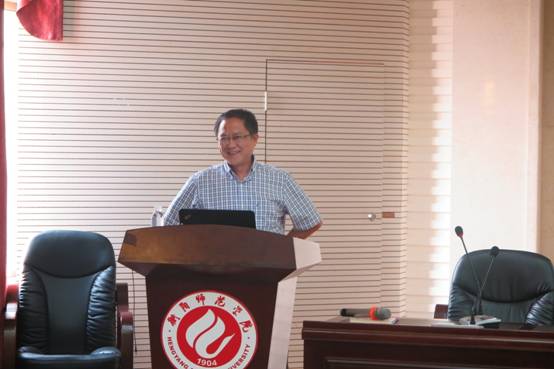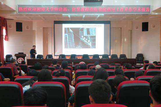 9月29日下午,新世纪百千万人才工程国家级人选、湖南省芙蓉学者特聘教授、教育部长江学者特聘教授、万人计划国家教学名师、美国橡树岭国家实验室杰出访问科学家、教育部创新团队、国家教学团队、国家精品课程、湖南省重点学科负责人、湖南省物理学会理事长、湘潭大学物理与光电工程学院院长钟建新教授及湘潭大学教授、博士生导师唐翌教授应邀来我校作学术报告。报告会在外语楼北311学术报告厅举行,物理与电子工程学院副院长谭延亮教授主持报告会,物理与电子工程学院部分教师及学生代表170余人聆听了报告。