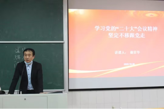 随后,谢书记就“举什么旗,走什么路,以什么样的精神状态,朝着什么样的目标前进”的问题调动在场各入党积极分子进行深入思考。接着,谢书记详阐述了二十大报告内容,并提醒大家要高举中国特色社会主义伟大旗帜,弘扬伟大建党精神,自信自强、守正创新、踔厉奋发、勇毅前行,为全面建设社会主义现代化国家、全面推进中华民族伟大复兴而团结奋斗。