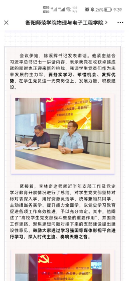 紧接着,李林奇老师就近半年支部工作及党史学习教育开展情况进行了总结,对学生党支部坚持对标对表深入学、用好资源灵活学、统筹兼顾共同学、主动担当务实学、提升能力全面学,以党史学习教育促进各项工作高效推进,予以充分肯定。其中,他阐述了“高校学生党支部战斗壁垒的重要作用”,并围绕工作思路、聚焦思想问题对接下来的支部建设提出建设性意见,鼓励大家通过学习强国等媒体影视平台进行学习,深入时代主流、奏响天籁之音。