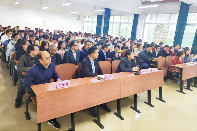 尔后,考研导师代表陈秋成通过实践案例讲述了当前就业环境的严峻以及考研的意义,强调考研是众多毕业出路的最佳选择。汪新文教授则就考研目标、专业课备考、复试调剂三个方面进行了细致讲解。他谈道:选择院校要量力而行,精准定位,不可从众;对于专业课,要大致了解其出题风格后再系统复习、查漏补缺;至于复试和调剂,要多咨询、多尝试,勿局限于固定院校。