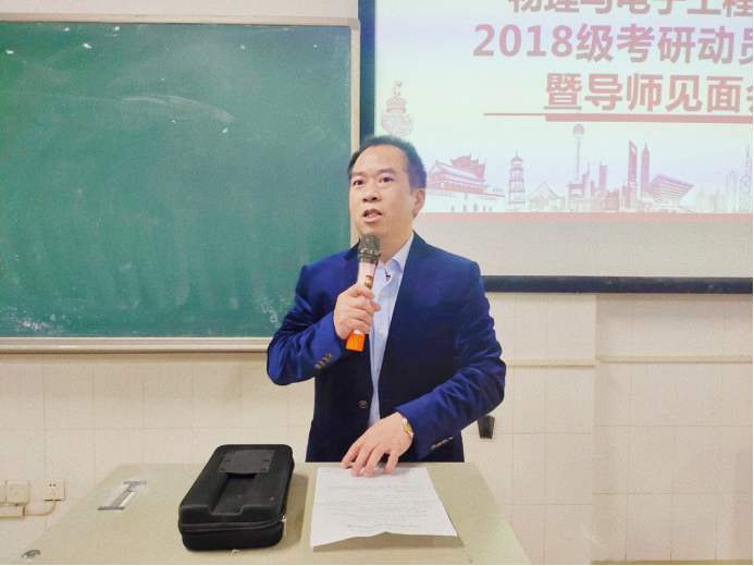 树立明确目标,端正考研态度,物理与电子工程学院于4月19日下午在计科楼215教室举办了2018级考研动员大会暨导师见面会,PA集团官网党总支书记