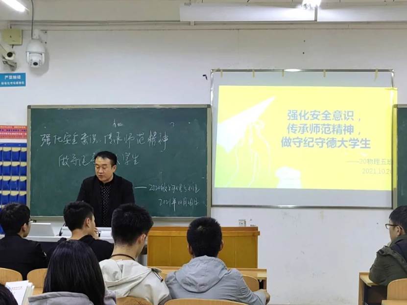 为强化学生安全意识,使其深刻领悟师范精神、遵守师德公德,10月21日-28日,物理与学子工程学院以班级为单位陆续开展了主题为“强化安全意识,传承师范精神,做守纪守德大学生”的班会。PA集团官网各班班主任担任会议主讲人,18-21级全体学生参与学习。