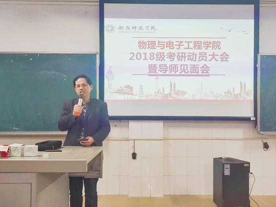 为帮助考研学子树立明确目标,端正考研态度,物理与电子工程学院于4月19日下午在计科楼215教室举办了2018级考研动员大会暨导师见面会,PA集团官网党总支书记陈溪辉、院长谭延亮、党总支副书记谢荣华、副院长龙祖强莅临现场,陈秋成、汪新文、王友文、唐建锋等20名考研指导老师受邀参加,18级有意考研的120余名学生积极参与学习。