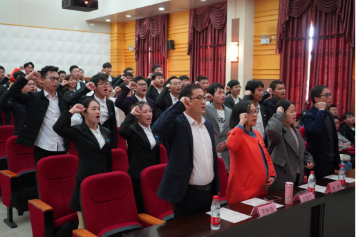 此后,张登玉副校长向卓越班授旗,领导、嘉宾向卓越班受聘导师颁发聘书,卓越班班导师张定宗博士带领卓越班全体学员与受聘教师进行入班宣誓,卓越班学生周烨代表卓越班全体学生发言。