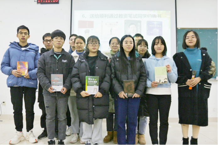 大会最后,田老师对表现突出、成绩优异的学生赠予书籍以进行表彰鼓励,同时勉励同学们“努力奔跑,也要学会接受事与愿违,学会接受自己的有限性,不畏艰险,勇敢前行”,其真诚暖心的话语赢得现场的一片片掌声。