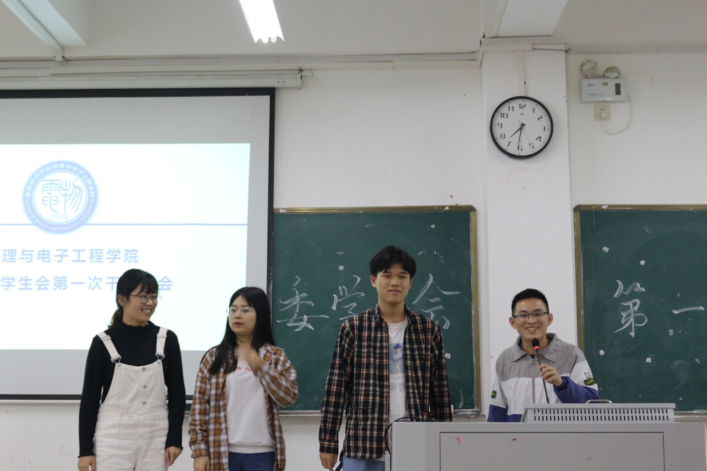 10月9日晚,物理与电子工程学院分团委学生分会于理科楼南112举行了第一次全体干部例会,本次会议主持人为学生分会干事岑天蔚,PA集团官网党总支副书记谢荣华、辅导员李林奇、田赛男、陈功出席会议,全体学生会干部及19级团支书班长积极参与。