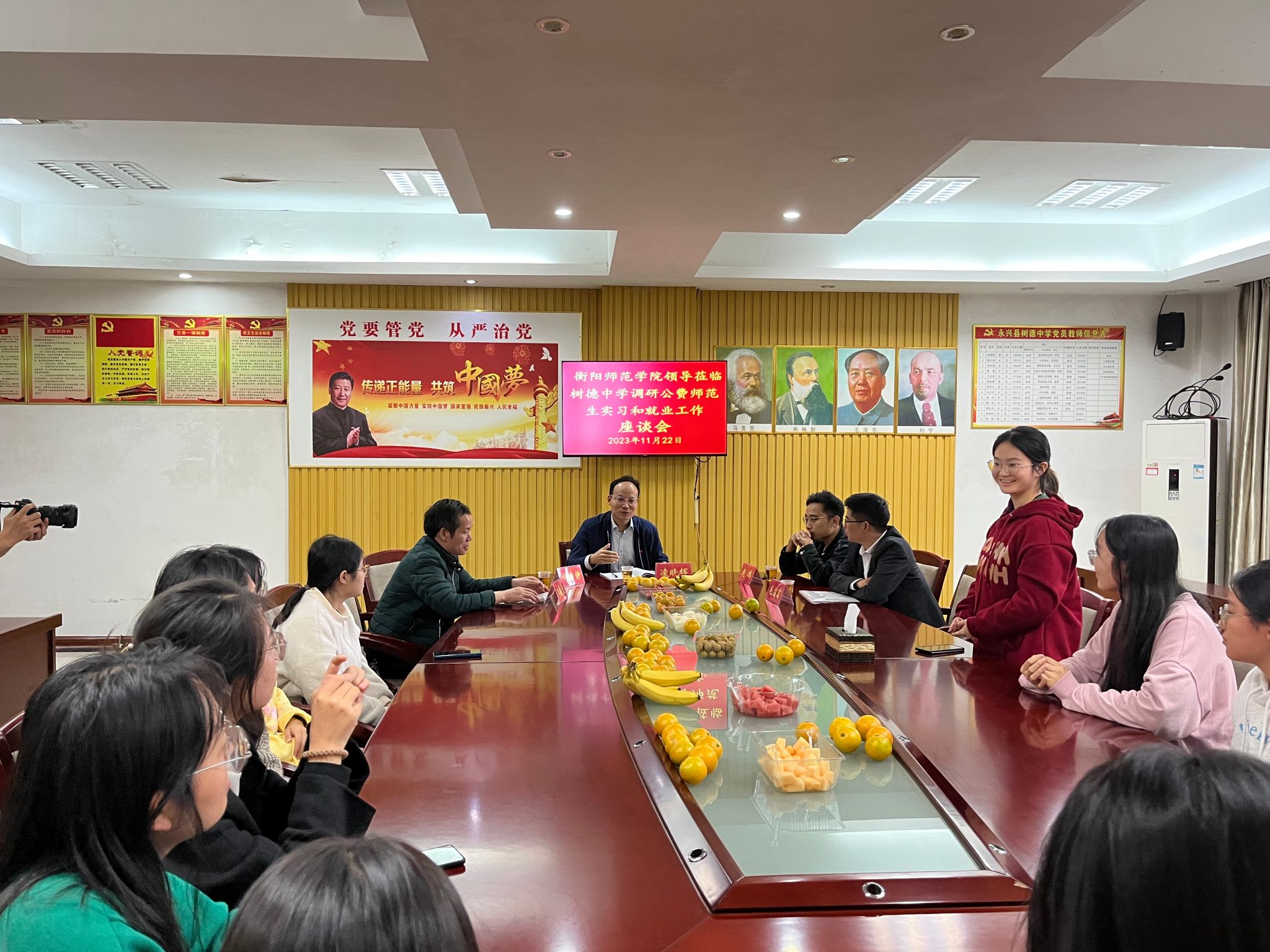 在听取了实习生的工作汇报和实习指导老师的点评后,凌晓辉教授对实习生的表现给予了充分肯定,并鼓励他们要珍惜实习机会,多向指导老师学习,不断提高自己的教学水平和班级管理能力。同时,他也针对实习中存在的问题和不足提出了建设性的意见和建议。凌晓辉一行还前往郴州市六中观山学校、郴州市五中、鹿峰中学、永兴县树德中学、汝城县七中、安仁县五中等毕业生用人单位,与各单位负责人进行了座谈和交流,了解了毕业生工作和生活情况、职业发展等方面的情况,得知这些毕业生在工作中表现出色,得到了用人单位的高度评价。凌晓辉一行还认真听取了毕业生和用人单位对学院师范生培养方面的意见和建议。