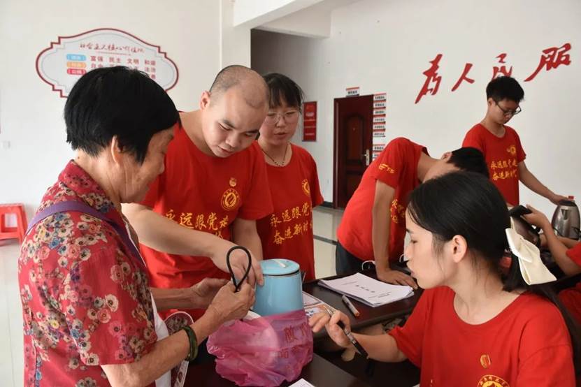 7月11日,实践服务团在延塘村综合服务中心设立维修点。随后,通过村委会线上与服务团各成员们线下的共同宣传,不断扩大活动开展范围。不一会儿,村民们纷纷将家中损坏的电器送来,成员们耐心与村民们沟通,认真仔细登记损坏问题,解答疑惑并分发宣传单。