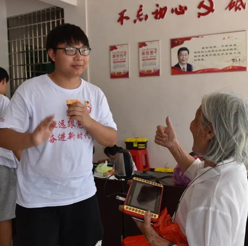 一位空巢奶奶来领已修好的播放器时,深深感谢,竖起大拇指不断肯定,握着成员们的手,依依不舍地说希望你们下次再来。