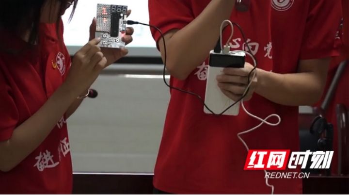 实践团成员进行电子科技小产品展示。