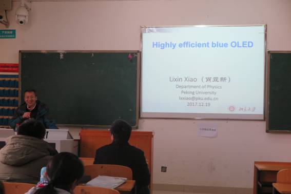 12月19日下午,北京大学物理学院教授、博士生导师肖立新教授应邀在理工楼南305为我校师生作了题为“Highly efficient blue OLED ”的学术报告,报告会由物理与电子工程学院副院长谭延亮教授主持,物电学院部分师生代表100余人聆听了报告。