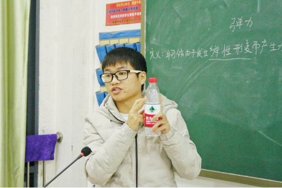 比赛伊始,选手们依次登台进行汇报,以初中物理教材中任一课题展开片段教学。他们凭借自身扎实的专业知识以及日积月累的教学经验,同时结合PPT、板书、实验等多样教学手段,声情并茂地讲解着这一节课。比赛过程中,选手们自信冷静,逻辑清晰,通过精心的教学内容设计、精彩的讲课技巧,把自己对教育事业的热爱演绎得淋漓尽致,充分展现了南岳学院实习生良好的精神风貌。