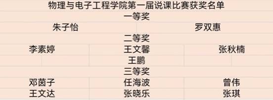 为加强师资队伍建设,促进教师专业成长,物理与电子工程学院于3月28日开展说课比赛,共有六名老师担任本次比赛的评委,他们分别是:龙祖强教授、王友文教授、刘雅丽教授、周婷老师、张军民老师、陈银花老师。为了此次比赛,选手们在赛前认真研读教材,积极备战,从自我学习到共同探讨,不断巩固优势加强短板,立足学科特点,积极准备,各展所长,呈现出了一场精彩纷呈的教学盛宴。
