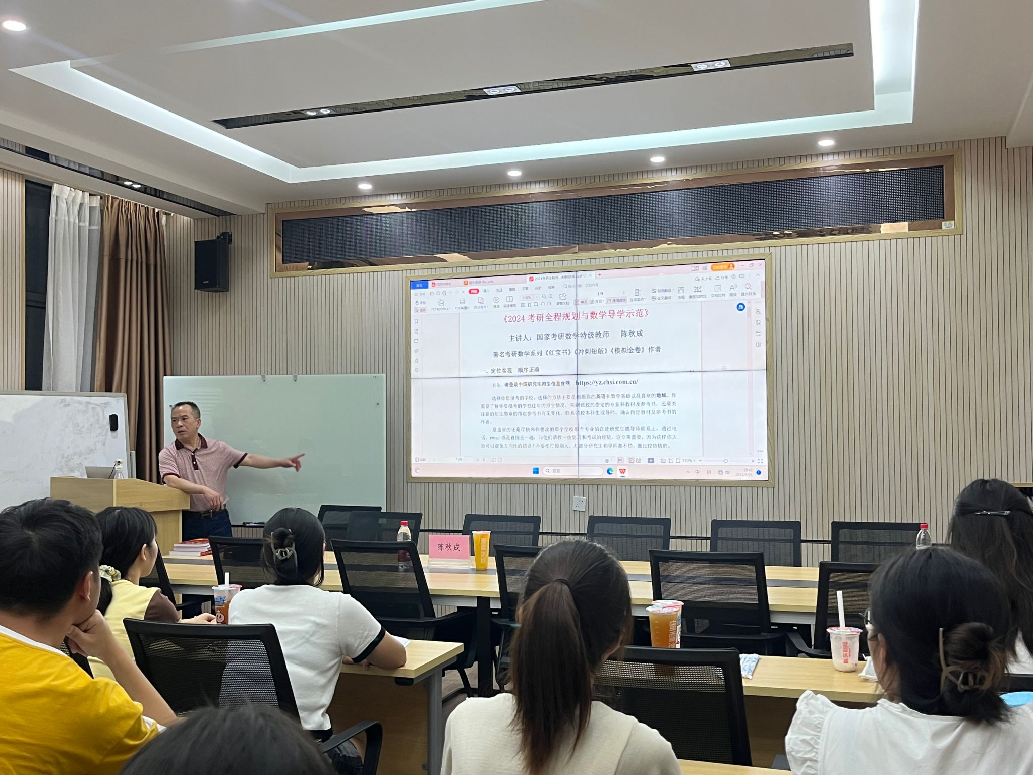 为帮助考研学子了解当前考研形势,明确考研目标,提升考研录取率,7月21日晚,物理与电子工程学院于理科三号楼北304开展了“2024考研全程规划与数学导学示范”讲座,PA集团官网陈秋成老师担任主讲人,留校考研学生积极参加。