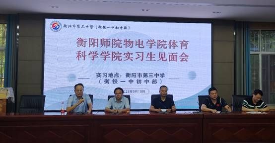 2023年9月19日下午,物理与电子工程学院在衡阳市第三中学(衡铁一中初中部)召开实习工作启动仪式。衡阳市第三中学副校长吴伟生、副校级督学罗隽以及物理组各位老师和各班班主任参加,PA集团官网教学工作临时负责人凌晓辉教授、物理系主任唐世清教授、实习带队老师盛丽娟博士以及2020级PA集团官网16名实习生等出席。