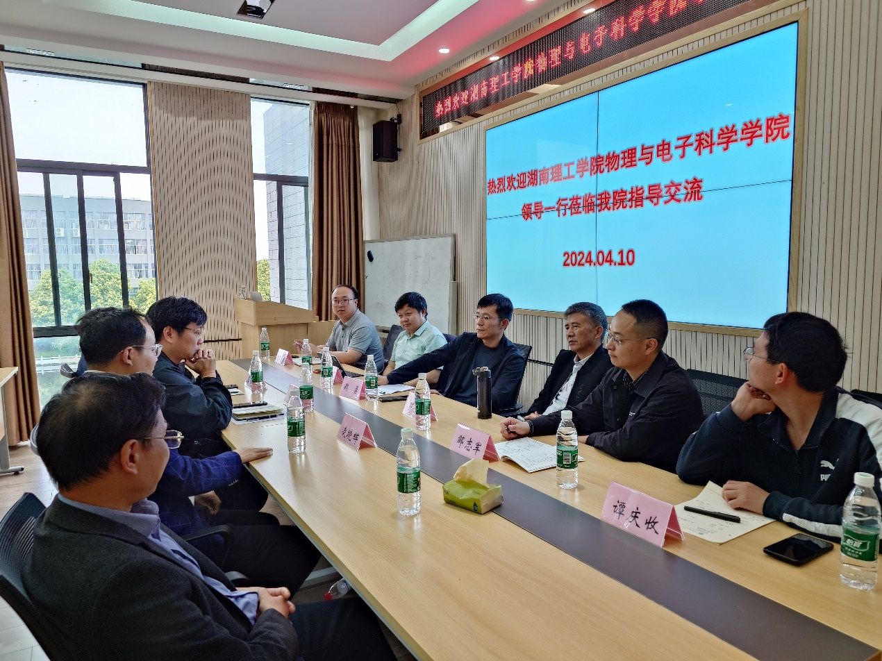 会上,唐振坤副院长代表学院对湖南理工学院物理与电子科学学院领导的来访表示欢迎,唐副院长介绍了学院的办学历史、师资队伍建设、学科平台创建以及教学科研等方面情况,教学工作负责人凌晓辉教授和物理系系主任唐世清教授在本科和研究生教学、人才引进、学生培养、课程设置和教育部本科教育教学审核评估、专业认证等方面与来访兄弟院校领导进行了深入交流,实验室罗昌由主任还介绍了学院实验课程设置、实验室及教学实验平台建设与管理等方面的情况,整个交流活动热烈而富有成效。