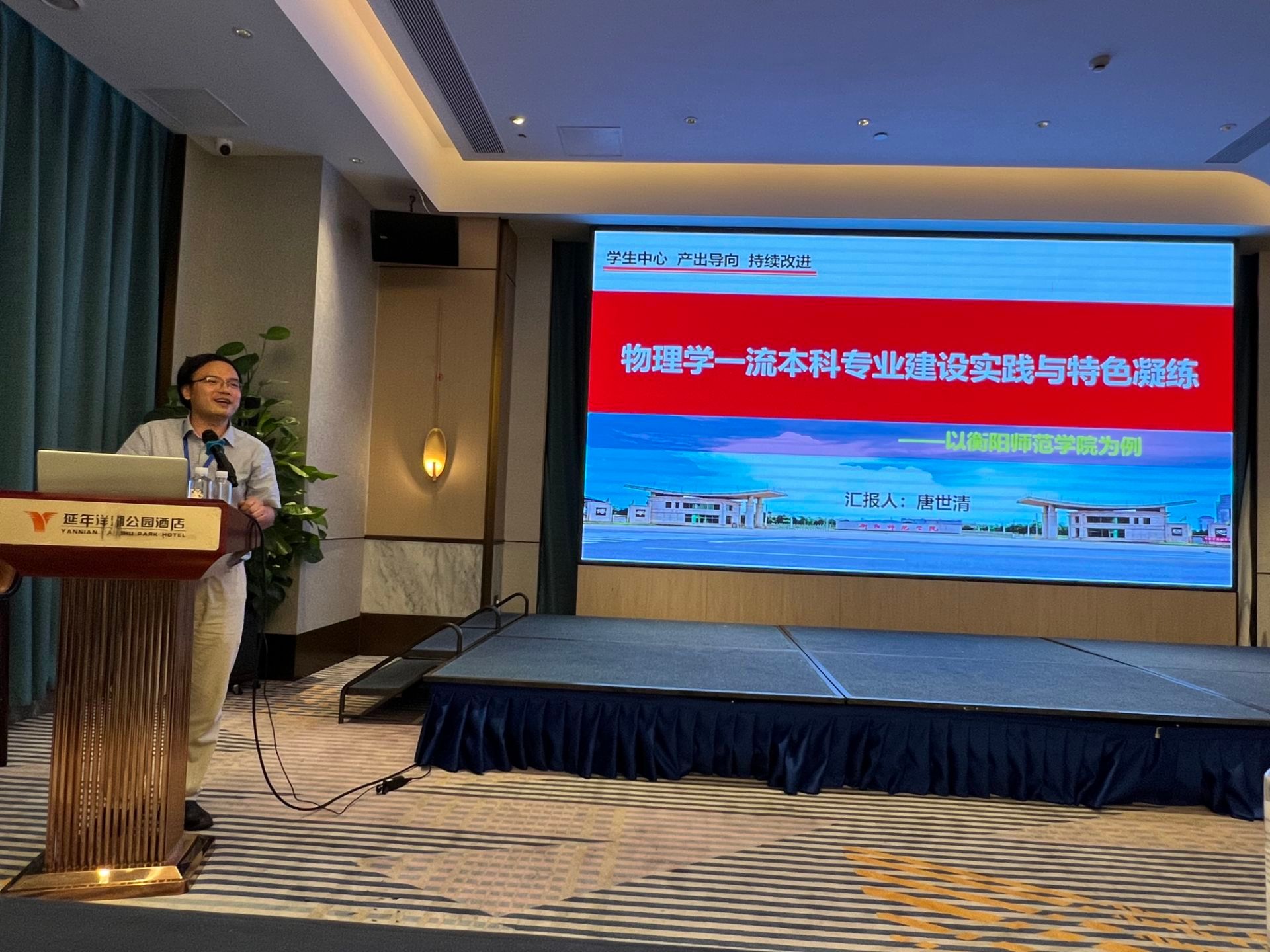 PA集团官网物理系主任唐世清教授代表学院做了题为“物理学一流本科专业建设实践与特色凝练—以PA集团官网为例”的大会报告。他通过生动的案例、详实的数据以及清晰的逻辑,全面总结和阐述了专业建设情况,特别是学院在省级课程建设、学科教师团队、学生核心素养和学科竞赛等方面取得的成绩和进步,突出了专业优势;依托省级平台和团队,理清脉络、创新思路,逐步梳理、不断凝练出鲜明的办学特色。报告内容丰富,分享的宝贵经验,在与会专家和老师中引起强烈反响。
