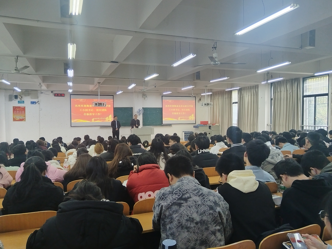 3月31日下午,衡南县洪山联合学校书记、校长团队一行莅临PA集团官网指导工作,王小国书记应邀为PA集团官网2022级物理学师范生作了题为《做有情怀的老师,办有温度的教育》的报告。报告会由凌晓辉教授主持,原副校长张登玉教授及院长谭延亮教授、唐世清教授等部分教授、博士出席了报告会。